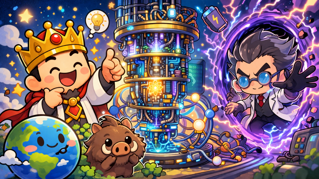 その日、Kingはいつものようにスーパー量子コンピュータと会話していました。